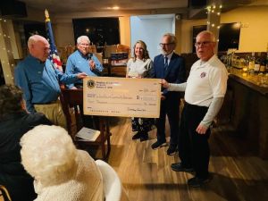 First year president of the Wood-bury Community Services Council (WCSC), Jeff McKenna and Deirdre Bologna, Food Bank Manager, were invited guests at the Club meeting at 1754 House Inn & Restaurant, November 19th for the Club’s annual donation presentation. Jeff replaced Bob Taylor as president of WCSC, a position he held for 15 years, last November when he retired and moved to Louisiana. Pictured right is Jeff and Deirdre receiving a check for $4,000 as 1st VP, Lion Paul Lu-chetti as Lions Jim Trompeter and Gary Greenstein look on. Jeff ex-pressed gratitude to the Club for the donation speaking aptly; “on behalf of the Community Services Council and all our volunteers, I want to